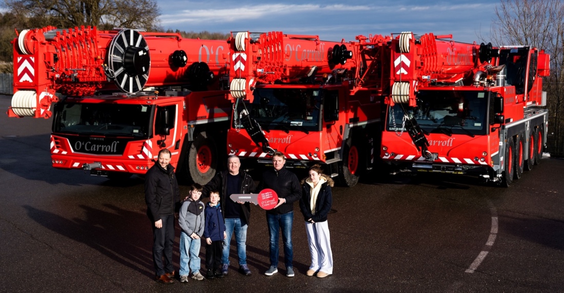 Irish rental company O’Carroll Haulage & Crane Hire has taken delivery of three Liebherr All Terrain cranes including the 70 tonne LTM 1070-4.2, a 90 tonne LTM 1090-4.2 and Ireland’s first 300 tonne LTM 1300-6.4 as part of a five unit deal.