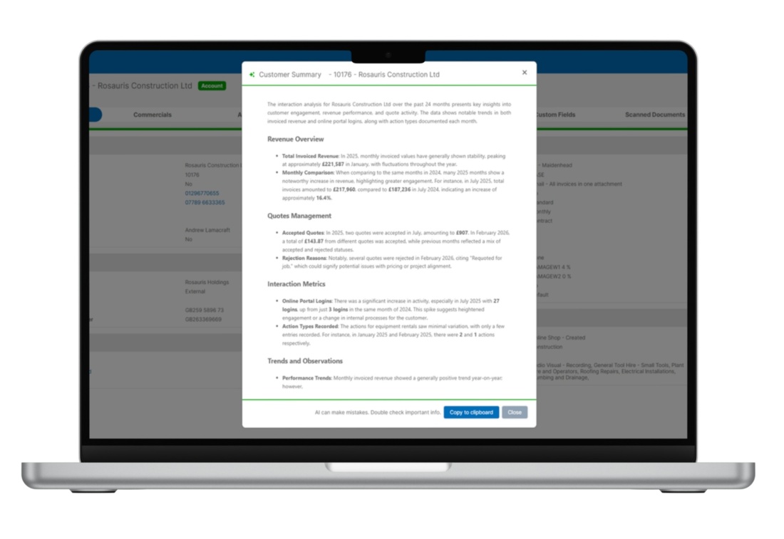 Chief technology officer, Chris Clarke said: "This innovation is about turning data into informed decisions. The customer summary gives rental businesses a clearer, faster understanding of their customer relationships, helping them respond proactively, improve service, and build stronger customer loyalty."