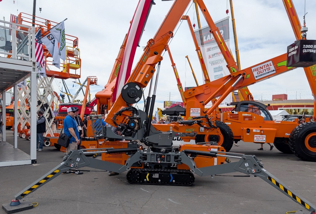 At Conexpo, a number of people, including us, were surprised to see an new spider crane, produced by North American telehandler manufacturer Xtreme Manufacturing, one of the very few produced outside of Japan, Italy and more recently China.