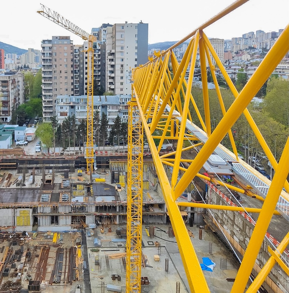 Two 10 tonne Potain MCT 275 flat top tower cranes are carrying out daily lift operations on a hotel development in Tbilisi, the capital of Georgia,.