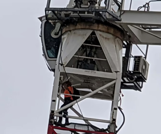 The tower kept calm after losing her jib, put on her rucksack, and began climbing down the wavering tower. She reached the safety of the building’s roof below and was reported to have only suffered minor injuries – cuts and scrapes.