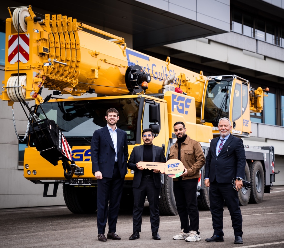Saudi Arabian rental company First Gulf Sky has taken delivery of three 120 tonne Liebherr LTM 1120-4.1’s All Terrain cranes, with plans to add five more units of the successor model, the LTM 1120-4.2, shortly.