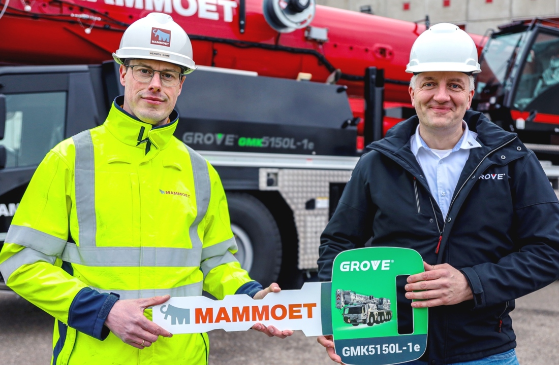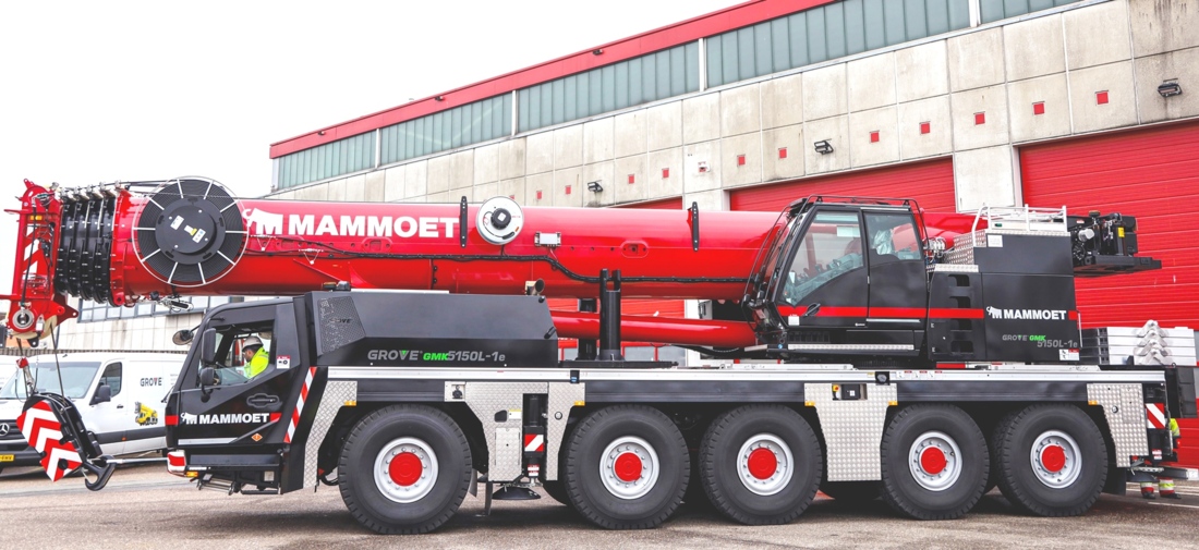 Dutch international crane, heavy lift and haulage group Mammoet has taken delivery of the world’s first 150 tonne Grove GMK5150L-1e plug-in hybrid All Terrain crane.
