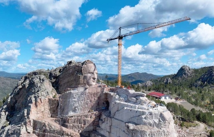 The Crazy Horse Memorial involves carving a 172 metre high, 195 metre wide representation of Lakota leader Crazy Horse into Thunderhead Mountain. The first 1000 EC-H has been used to handle granite blocks, tools and prefabricated elements, and the second crane will support lifting operations on the upper sections of the monument.