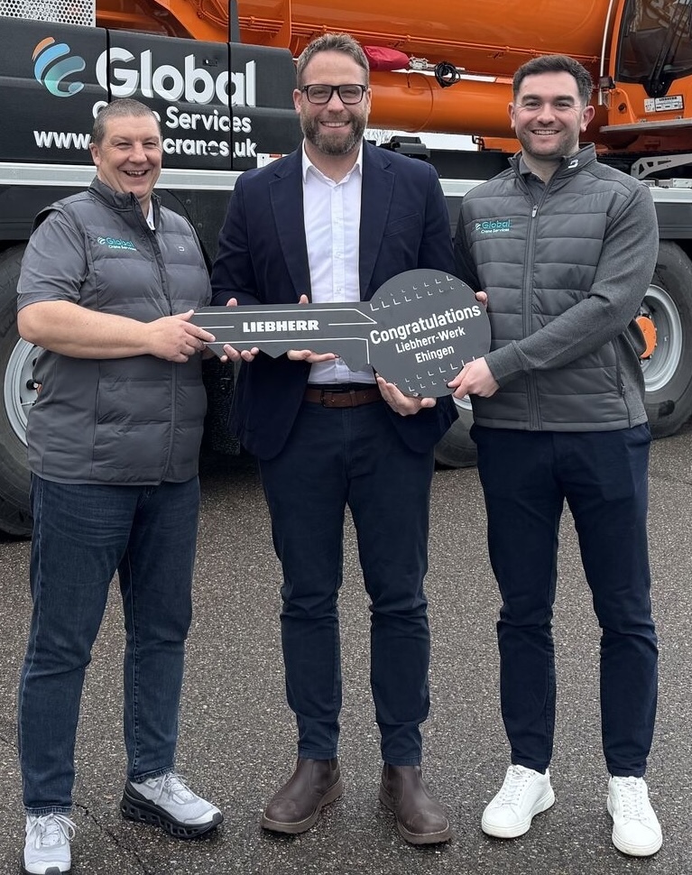 Liebherr UK sales manager, Lyle Sibbald said: “Thanks to Gordon Harper and Craig Graham from Global, who came to Ehingen to see the first of the two new cranes before it leaves for Aberdeen.”