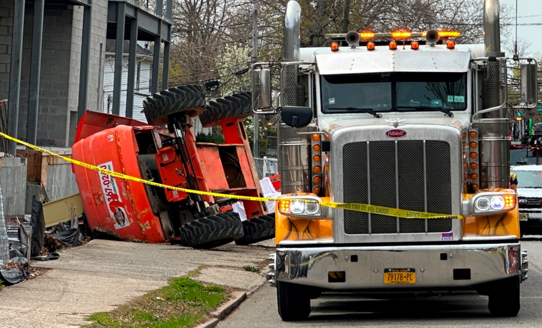 The man, father of four, Vincent ‘Vinnie’ Trotter, 34, was on the platform of the boom lift, a JLG from the Redmount Aerials rental fleet, when it came off the side of the trailer onto the sidewalk, pavement. The truck was parked in the street, Main Avenue in Clifton, New Jersey - alongside a new construction site of a school. The main contractor for the site is Regency Developments. He is said to have died almost immediately.
