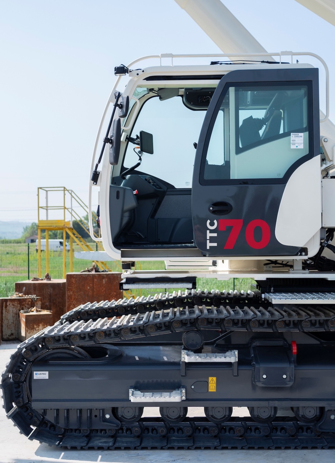 The TTC 70 can handle its maximum capacity at a 2.5 metre radius or 64.5 tonnes at three metres. The crane has a 36.8 metre four section heavy duty main boom, a 15.6 tonne capacity on full boom at a radius of up to eight metres radius or take 2.2 tonnes to the maximum radius of 34 metres. Load charts exist for superstructure counterweights as low as 5,000kg, fully retracted track widths and slopes of up to four degrees.